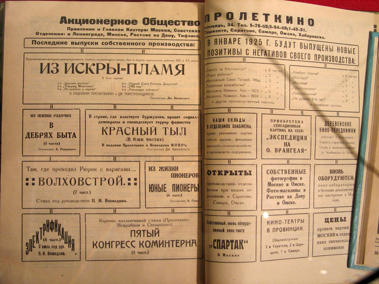 Реклама АО «Пролеткино» // Пролеткино. 1924. № 1. С. 66−67. НБ ГАРФ. Ж-1854