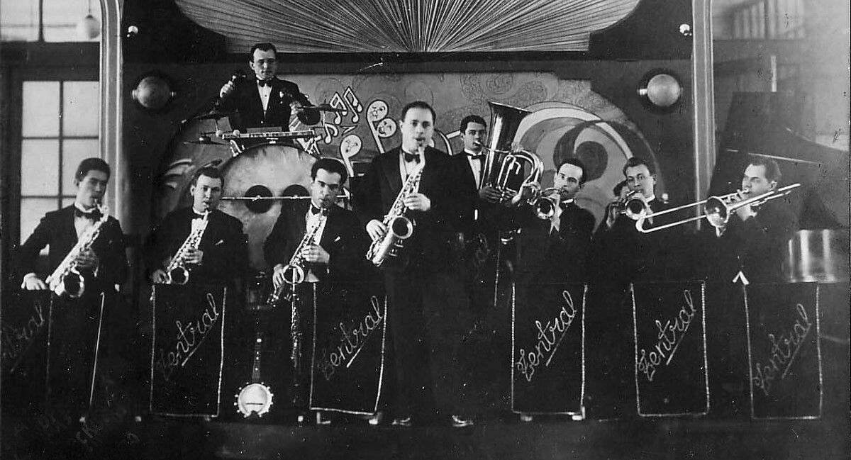 Так вот, с историей нашего кинотеатра исследователи связывают деятельность оркестра под управлением джаз-тромбониста Георгия Михайловича Коморского. Силами коллектива ставились целые спектакли, одна из постановок в исполнении джаз-оркестра была посвящена вождю мирового пролетариата Владимиру Ленину. Оркестр выезжал и в санатории, и в дома отдыха. Популярность джаза и танцевальной музыки к середине 1930-х годов была столь велика, что казалось «оджазированная» легкая музыка вытеснит из жизни народа музыку симфоническую, серьезную.