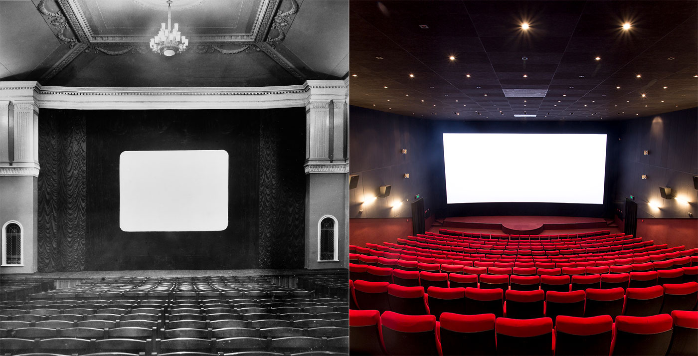 Вид кинозала раньше и сейчас. Проект к 100-летию кинотеатра «Победа»
