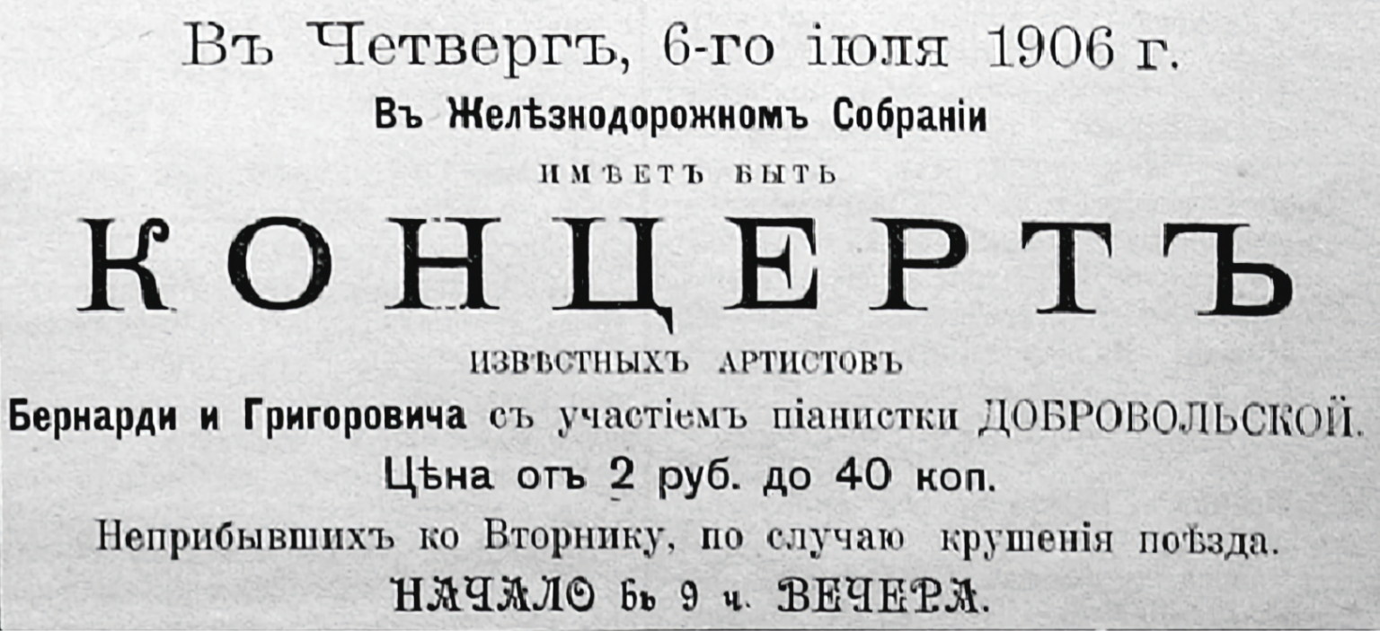 Критика проявляется в отношении проведения досуга: «Пока я не видел, не ощущал здесь биения пульса общественной жизни, мертво и как-то скучно кругом… Нельзя же считать за жизнь препровождение времени на любительских спектаклях или у какого-то профессора черной и зеленой магии. Примитивные и „упрощенные“ развлечения даже и в глуши ничего не могут дать уму и сердцу…» (НЛ, № 2 за 2 апреля 1906 г.).