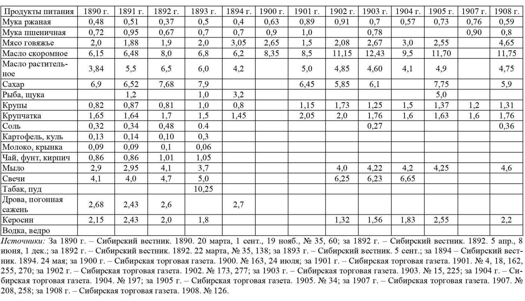 Для сравнения цены в губернском городе Томске (цена, в основном, за пуд)