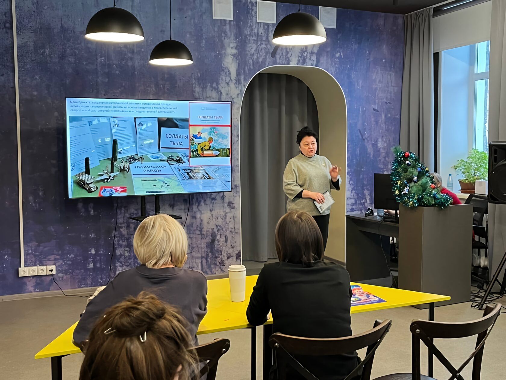 - Заведующий отделом обслуживания ЦРБ им. П. П. Бажова Ю. Г. Мартынова рассказала о проекте «Солдаты тыла». В своём выступлении раскрыла все этапы реализации: от идеи до выпуска сборника путеводителей по Ленинскому району военного периода.