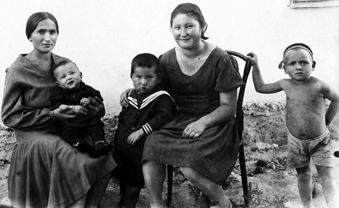 Айтматова (слева) с сыновьями Ильгизом (на руках у матери) и Чингизом (в центре)