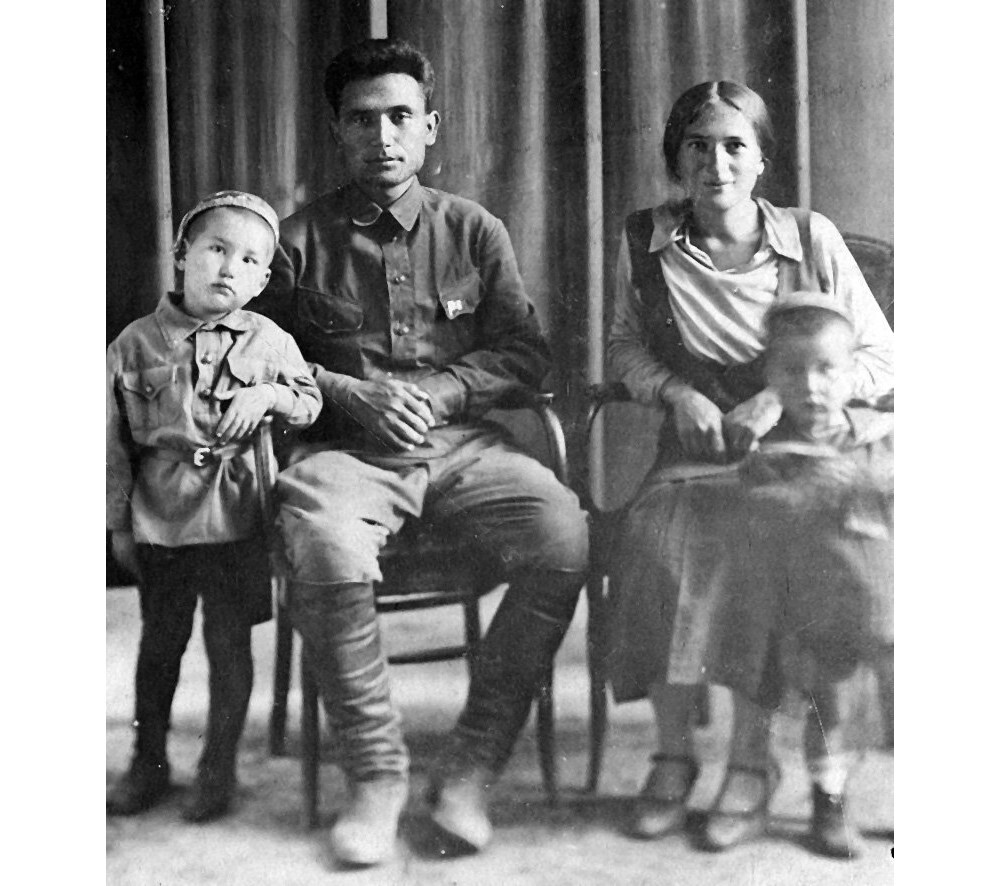 Чингиз (слева) с родителями и братом