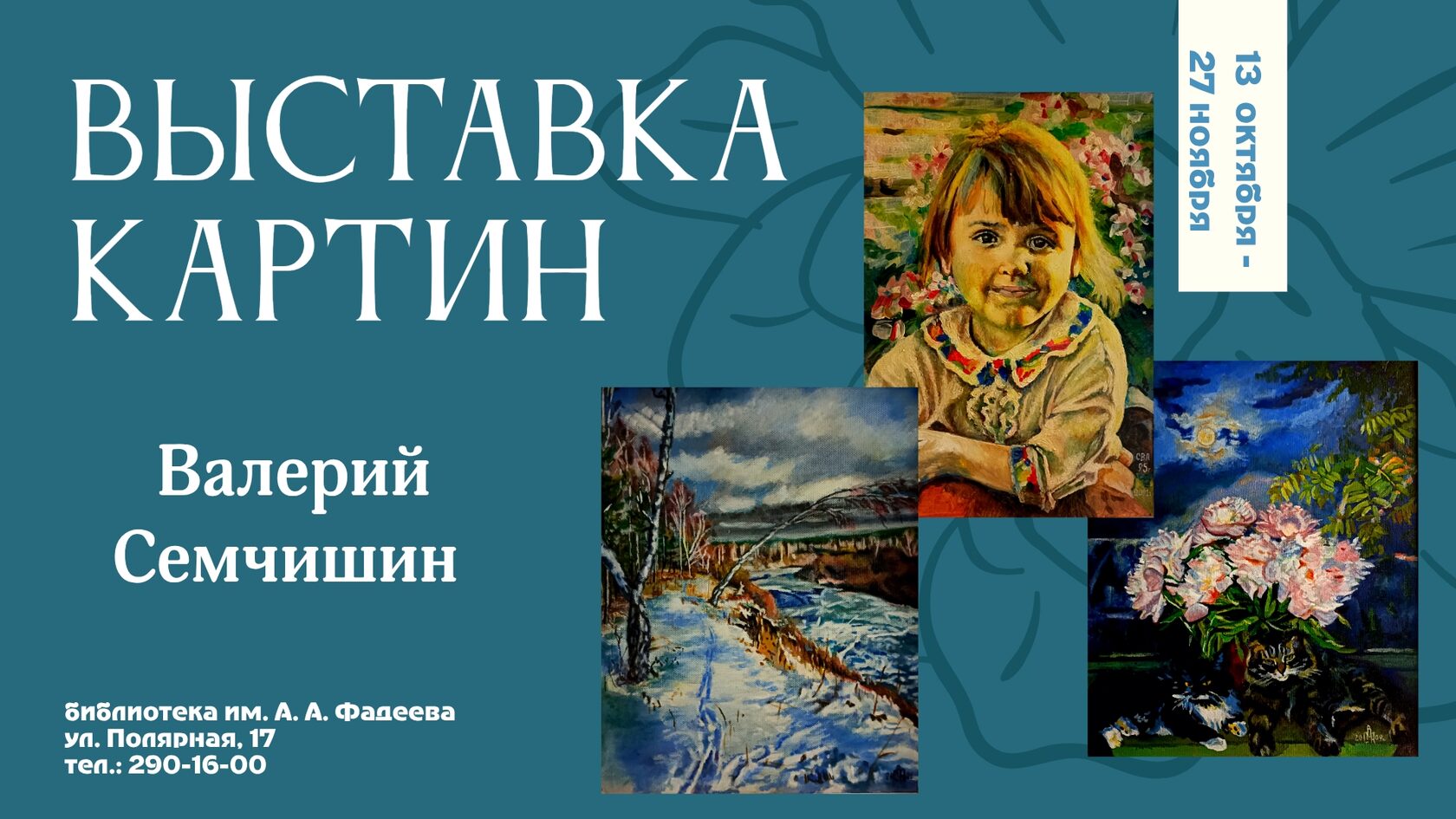 13 октября в библиотеке им. А. А. Фадеева открылась выставка нашего земляка, художника Валерия Алексеевича СЕМЧИШИНА. Основная тема: семья, дом, родные и близкие.