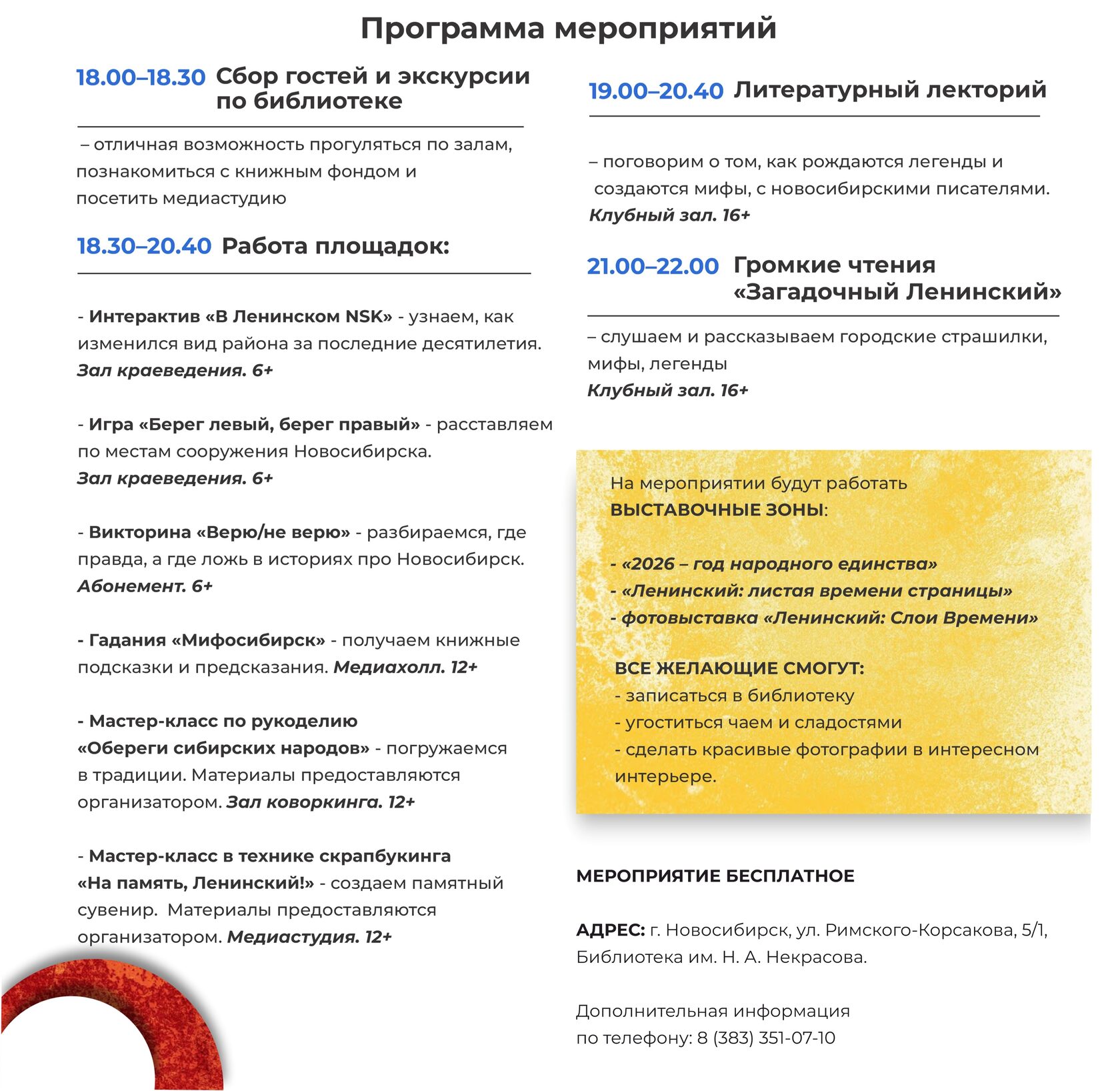 Регистрация на мероприятие по ссылке: https://www.lencbsnsk.ru/biblionoch_registration