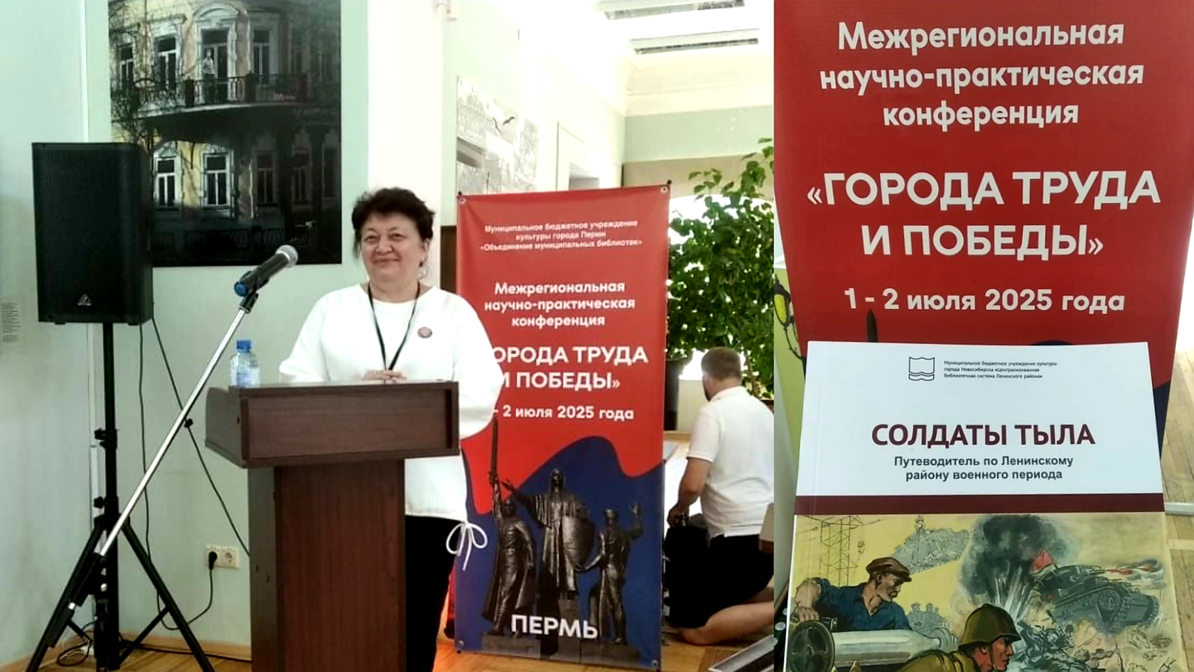 В рамках форума объединение библиотек г. Перми организовало межрегиональную научно-практическую конференцию «Города труда и победы» (с международным участием, Республика Беларусь). Представители 23 городов трудовой доблести презентовали на форуме свой опыт работы по сохранению и продвижению локальной истории периода Великой Отечественной войны.