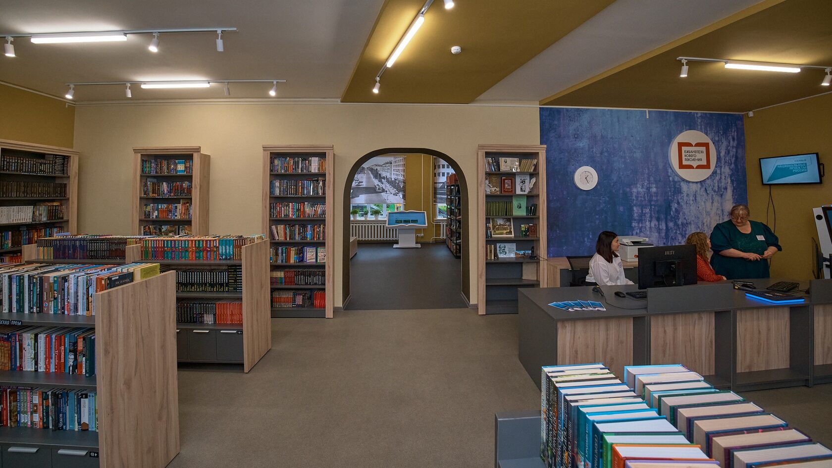 Библиотека обрела новый облик благодаря уникальному дизайн-проекту, ремонту и отделке, была укомплектована новой мебелью и оборудованием, которые отвечают актуальным стандартам обслуживания пользователей.